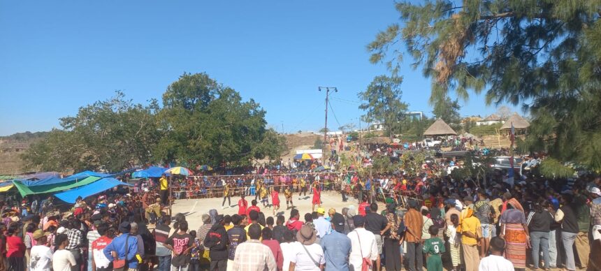 Peringati HUT RI ke 80 Camat Bikomi Utara gelar pertandingan persahabatan antara negara Indonesia dan Timor Leste.